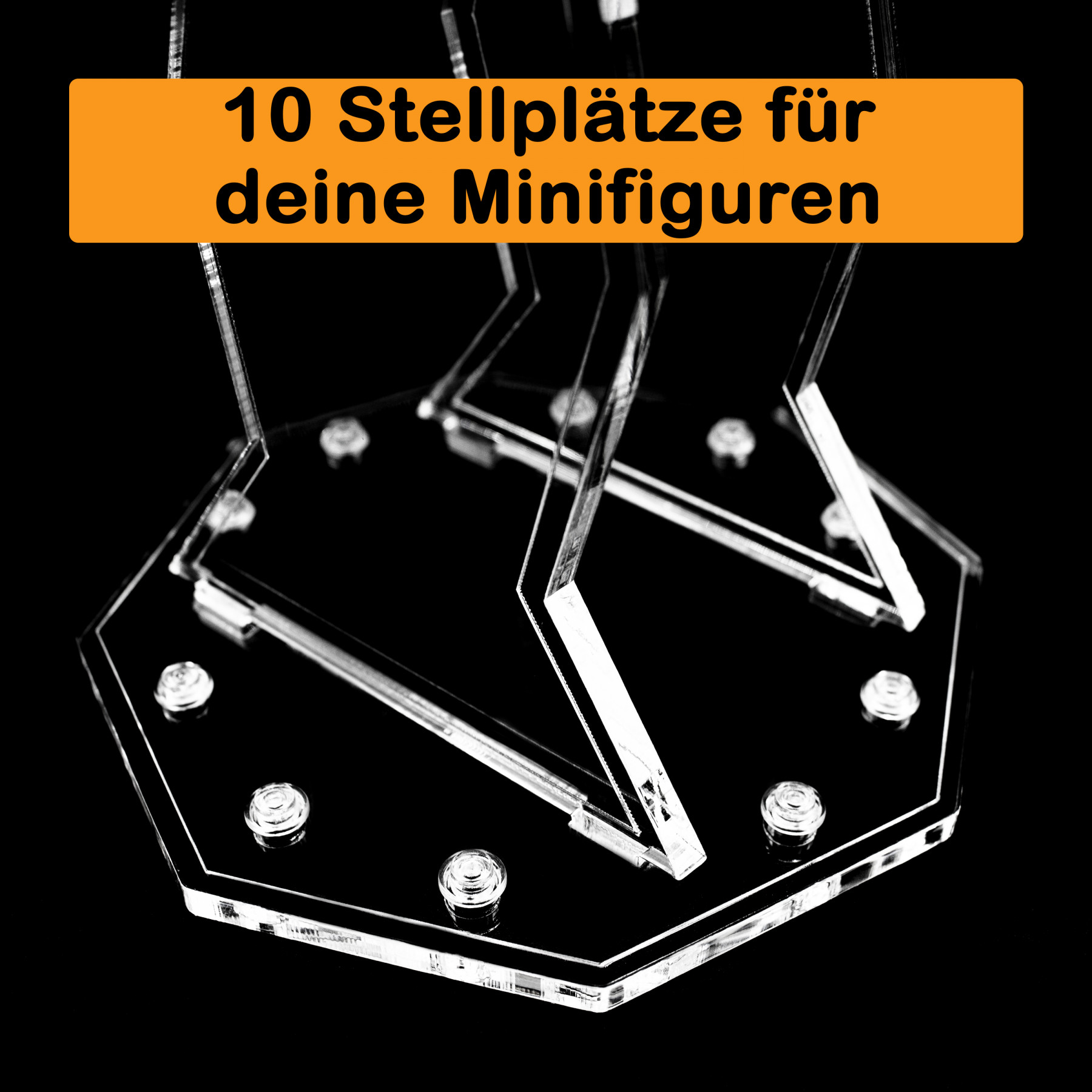 (Modell und Minifiguren sind nicht Bestandteil des Angebots.)Das abgewinkelte und speziell angepasste Design des Standfusses ist ideal